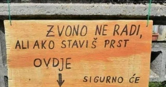 Share Facebook Twitter Pinterest Email Ѕвончето не им работи на овие луѓе, но тие не решија веднаш да го поправат. Наместо тоа, оставија порака на оградата што ги натера соседите и минувачите да се смеат. Да се надеваме дека никој не ги послушa нивните совети. 🙂 Еве што напишале: Related Posts ДРЖАВНА ЛОТАРИЈА – ВО ПОДДРШКА НА КУЛТУРАТА И ОШТЕСТВЕНИОТ РАЗВОЈ август 26, 2025 Направете разнобојни креди од лушпи од јајца јуни 9, 2020 Крава со својот манекенски ôд ги воодушеви корисниците на социјалните мрежи јуни 9, 2020 Write A Comment Cancel Reply Зачувај го моето име, е-маил и веб страна во овој пребарувач за следниот пат кога ќе коментирам.