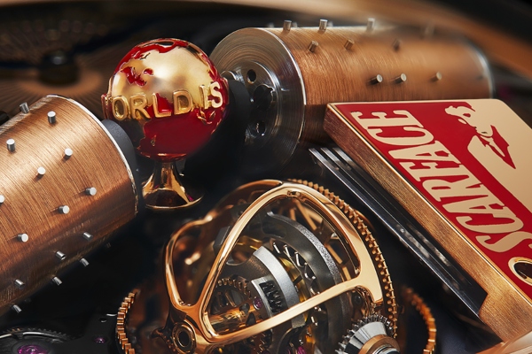 Кинематографските референци може да се видат под куќиштето во форма на купола од сафирен кристал. Тука е црно лакираното пијано изработено од 18-каратно злато – неговите типки се движат кога музиката се активира, заедно со светло црвената Scarface табла со силуетата на Тони Монтана.