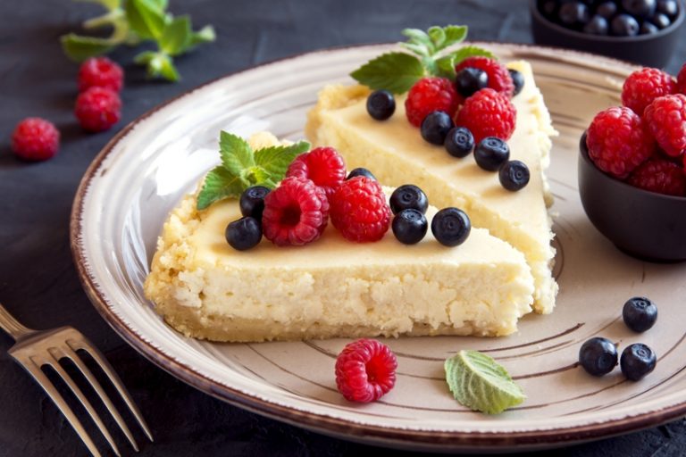 – Печете 40 минути во загреана рерна на 180 степени. Кога тортата ќе биде готова, оставете малку да се излади. Извадете ја од калапот, посипете со шеќер во прав и сервирајте ја исечена на триаголници. Доколку сакате, можете да послужите парчиња прелиени со остатокот од кремот.