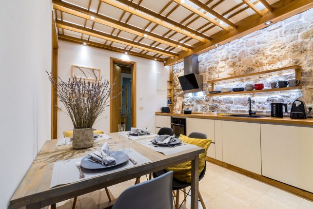 Луксусзниот апартман уреден со многу љубов го заджал шармот на старата камена куќа и претставува совршено место за одмор во еден од најубавите хрватски градови.