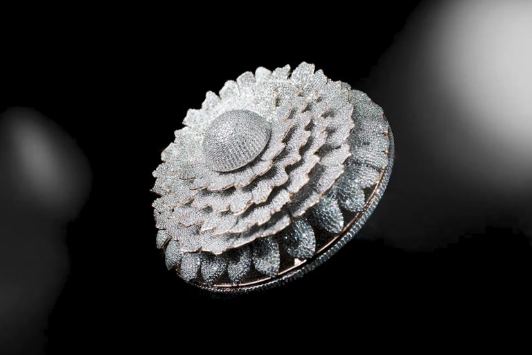 Наречен Кадифа, познат и како „Прстен на просперитетот“, има кружен цветен дизајн украсен со илјадници дијаманти.