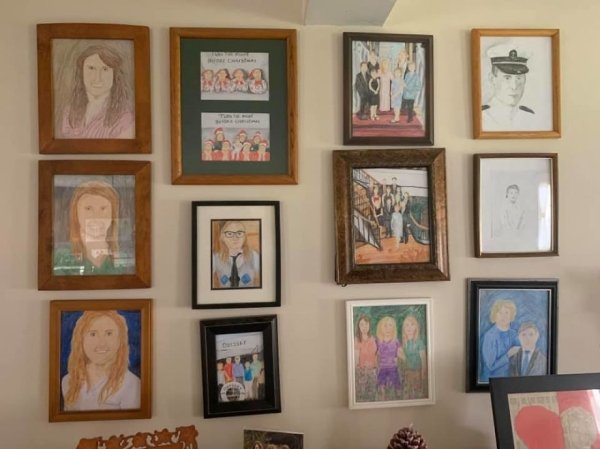 „Доколку некој има потреба од смеа или некоја добра вест, јас работев на проект последните 12 дена, без да им кажам на моите родители, чекајќи да ги забележат. Почнав лошо да ги рекреирам врамуваните фотографии на нашиот ѕид со врвни уметнички материјали, (ака – кутија креони). Секој ден заменував нова фотографија со нов и ужасен цртеж. “ -Кристен Воглер