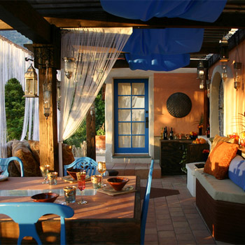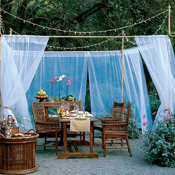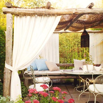 Ќе ви треба градинарски мебел, маса со удобни столчиња или клупа со маса. Потоа треба да го рекреирате просторот како затворена просторија.