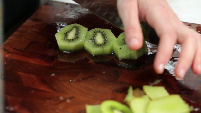 Исечете го целото овошје на коцки, ставете го во блендер и измешајте. Кога смесата ќе се заврши, процедете го преку цедилка и сервирајте.