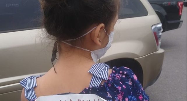 На луѓето ширум светот им се советува да одат да купуваат самостојно и да одржуваат минимално растојание од два метра. Но, самохраната мајка Мери Ен Фоси Ресендез нема на кој да ја остави својата 5-годишна ќерка, а поради осудата ѝ става на грбот порака што девојчето мора даја носи.