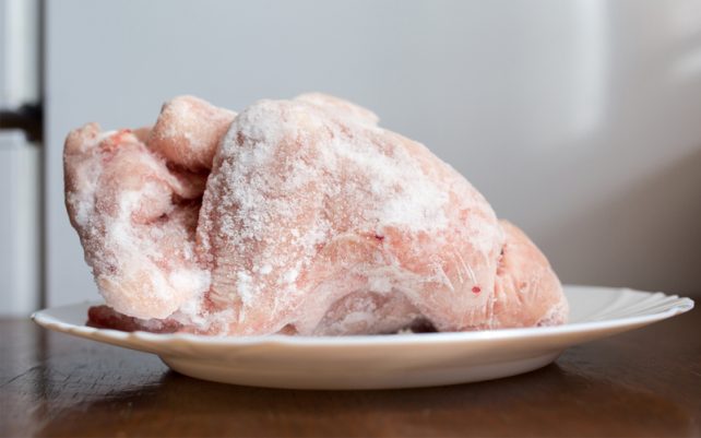 Најбезбеден начин за одмрзнување на месото е да го извадите од замрзнувач навечер и да го ставите во фрижидер. Друг метод е ако чувате пилешко и други видови месо во херметички затворена вреќа, ставете ја кесата во сад со ладна вода и променете ја водата кога ќе се загрее. Избегнувајте одмрзнување на храната во топла вода.