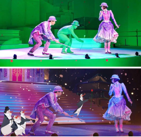 - Сцена од филмот „Враќање на Мери Попинс“ со и без специјални ефекти