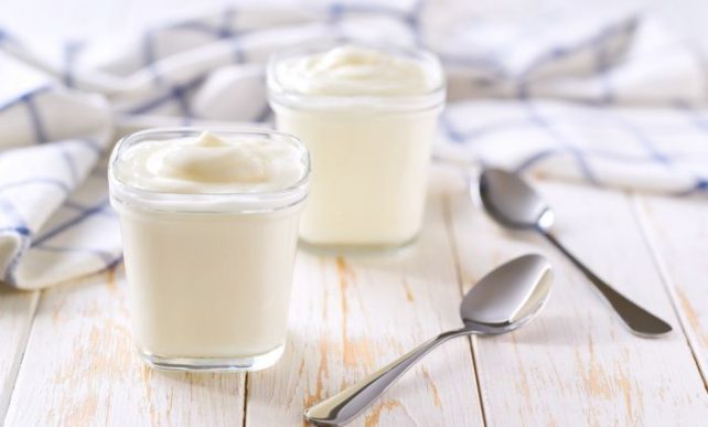 Топлете го млекото додека не се загрее, но не да зоврие. Тргнете го од шпоретот и додадете го јогуртот или киселото млеко и пробиотскиот прав. Потоа, покријте го со крпа и оставете го преку ноќ. Наутро, промешајте и оставете уште еден час да се згусне. После тоа, ставете го јогуртот во фрижидер да се олади.