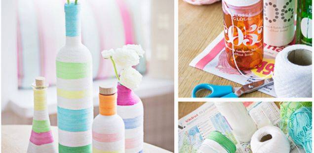 Дали знаете дека дури и од најобично стаклено шише, со малку креативност може да направите уникатна декорација? Соберете неколку стаклени шишиња или други стаклени садови, со различна форма, лепило и конец и веќе имате се што ви треба за да започнеме со работа. Инструкции: