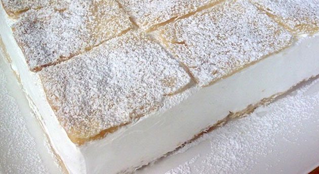 Потребно е: 400 гр готово лиснато тесто за филот: 7 белки, 400 гр шеќер, сок од 1/2 лимон, 2 кесички ванилин шеќер Подготовка: – Загрејте ја рерната на 200 целзиусови степени. Решетката за печење ставете ја на средина. – Поделете го лиснатото тесто на два дела. Секој дел посебно ставете…