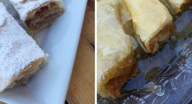 ПОТРЕБНИ СОСТОЈКИ: * 500 г тенки готови кори * 1200-1500 г јаболка (излупени рендани) * 50 г маргарин (путер) (за пржење на јаболката) * 1 рамно наполнето лажиче цимет * 100 г маргарин (путер) (стопен ) * 150 г шеќер * 5 лажици лебни трошки (презла) * 1 кутивче ванила…