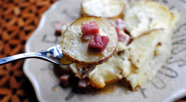 ПОТРЕБНИ СОСТОЈКИ: * 3 лажици брашно * 3 лажици путер * 600 мл млеко * малку сол, црн пипер, оригани * 600-700 г компир * 150 г сланина (сечкана) * 1 кромид (рендан) НАЧИН НА ПОДГОТОВКА: Подготовка на бешамел сосот: Во тава за готвење, на тивок оган растопете го путерот…