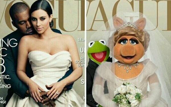 Ким Кардашијан конечно се најде на насловната страница на Вог. Иако Ана Винтур, уредникот на престижното списание изјавила дека Кание не морал да ја моли за ова сликање, никој не поверувал дека веднаш ќе тргнат лавина од пародии на сметка на популарниот пар. Кание и Ким се познати како младоженец…