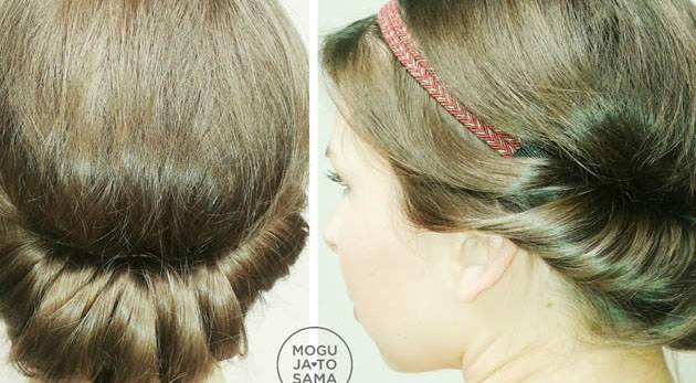 Оваа фризура одговара и за оние со средна должина на косата, но и за оние со подолга. Изгледа едноставно и елегантно, а се прави за помалку од 5 минути. Сè што ви е потребно е само една тенка трака како ластик околу главата. Од предната страна може да биде украсна…